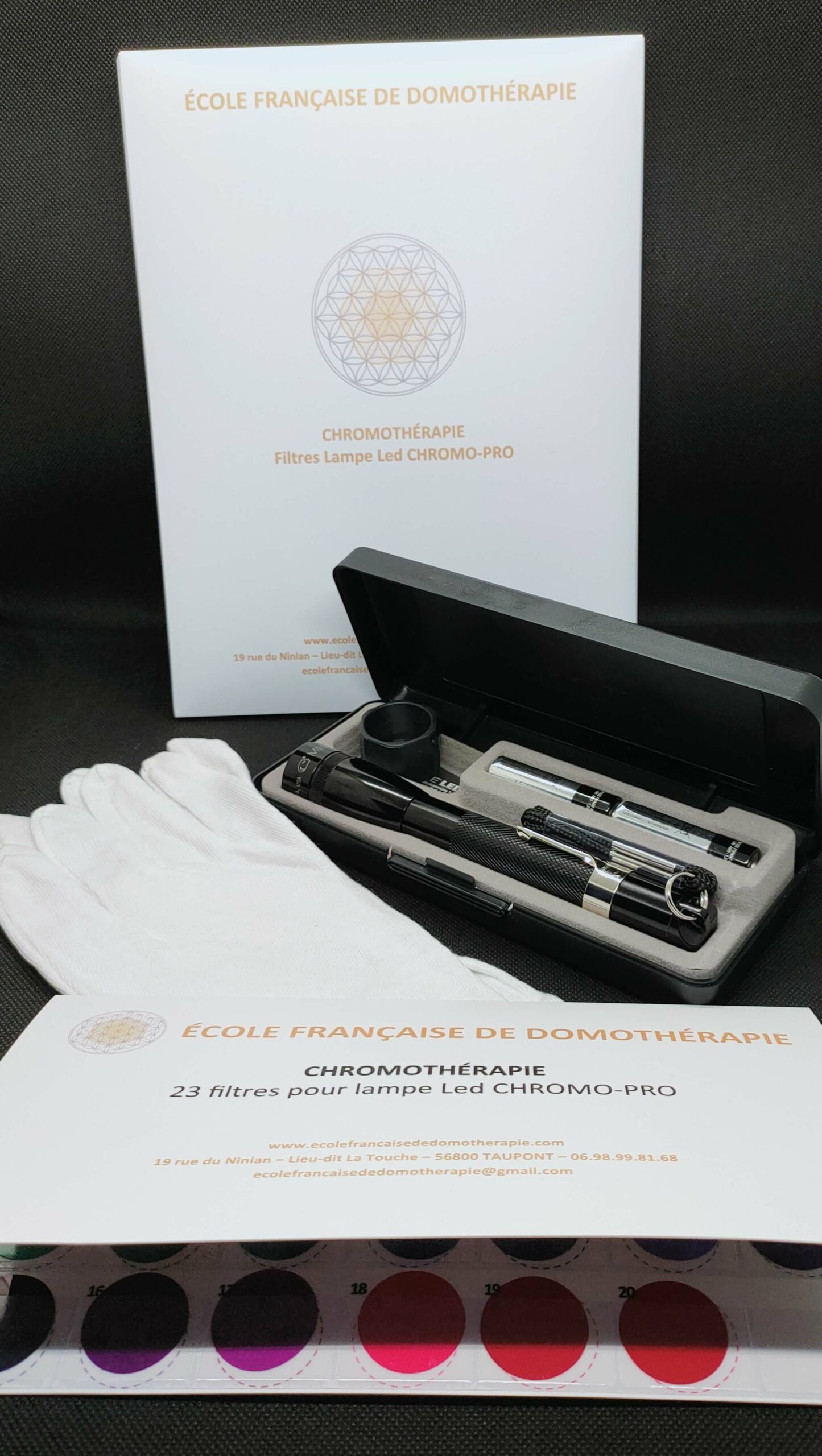 La pochette 23 filtres est également vendue séparément du kit Chromo-Pro, sur la boutique www.boutiquedelaradiesthesie.com